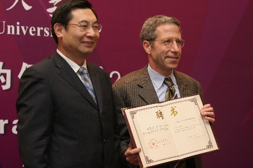 2007 Nobel Laureate in Economics Eric S. Maskin was conferred the title of honorary professorship fromTsinghuaUniversityonNovember 8, 2007.The day also saw the reunion of Professor Marskin and his five Chinese students graduating from Harvard, who currently are all faculty members at Tsinghua SEM.