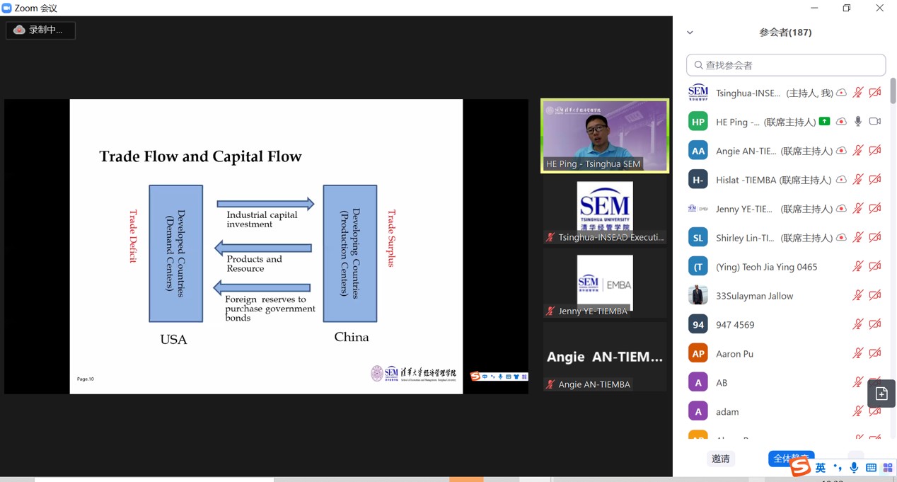 Tsinghua-INSEAD Executive MBA (TIEMBA) held a master class for as many as 200 online participants from around the world on June 1, 2022.