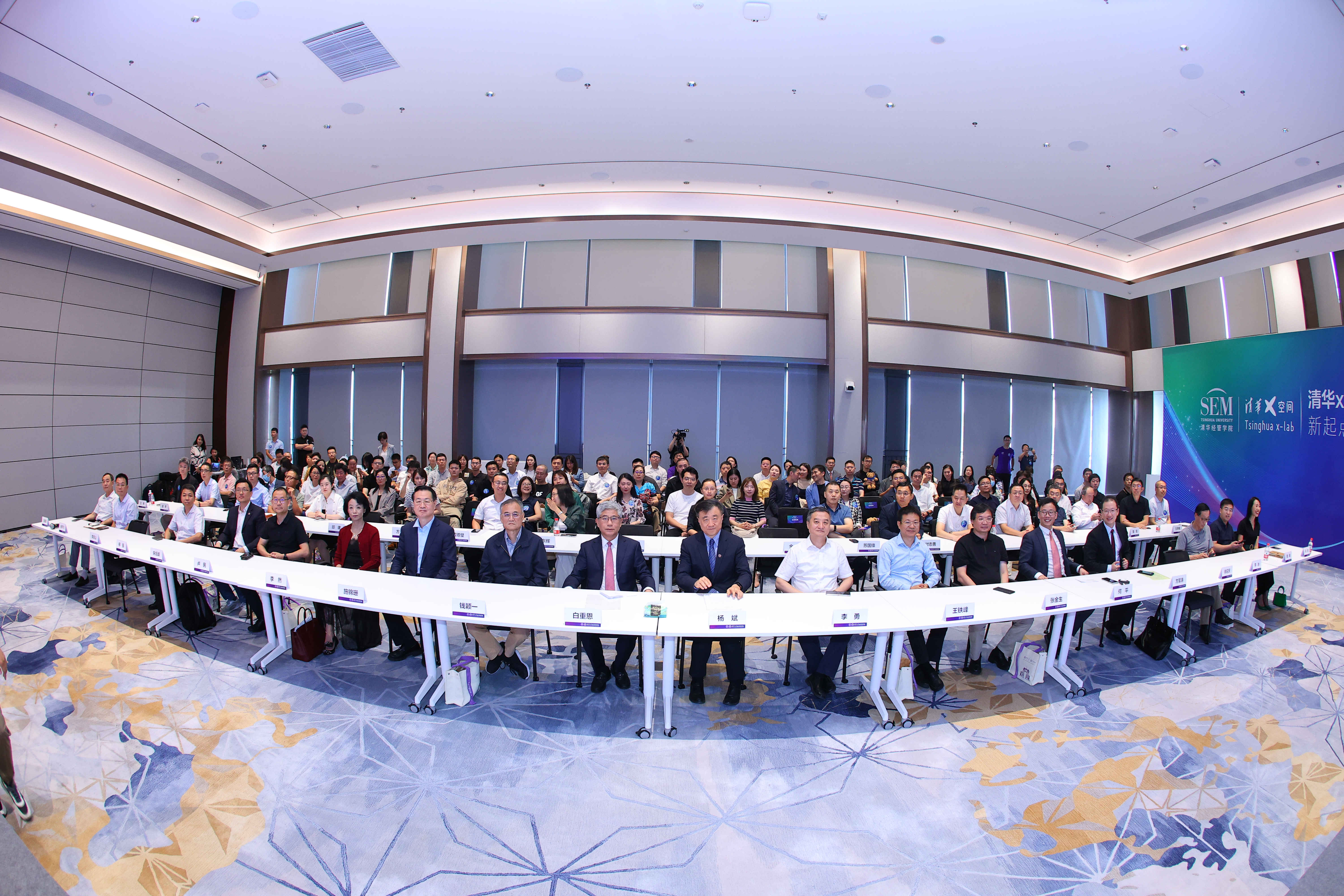 YANG Bin, vice president of Tsinghua University; BAI Chong-En, dean of the School of Economics and Management at Tsinghua University (Tsinghua SEM); QIAN Yingyi, distinguished professor of Arts, Humanities, and Social Sciences at Tsinghua University, professor in the Department of Economics, and the fourth Dean of Tsinghua SEM (2006-2018); HE Ping, deputy dean of Tsinghua SEM; ZHU Xufeng, dean of the School of Public Policy and Management at Tsinghua University; WANG Tiefeng, chair of the Department of Chemical Engineering at Tsinghua University; LIU Qiang, chair of the Department of Precision Instruments at Tsinghua University; LI Jingshan, head of the Department of Industrial Engineering at Tsinghua University; ZHEN Shuning, dean of the Institute of Tsinghua University in Hebei; and leaders and representatives from as many as 20 schools, departments, and divisions attended the ceremony. Additionally, LI Yong, deputy director of the Investment Promotion Bureau of the Ministry of Commerce; the couple SHI Jinshan and LI Ran, top executives of Beijing Jiaxin Huijin Asset Management; David Fang, vice president of Corporate Affairs & Sustainability at Nestlé Zone Greater China; ZHANG Jinsheng, executive president of Tus-Holdings; and LU Min, vice president of Beijing Century Galaxy Technology Group, and guests from more than 20 partner institutions and dozens of entrepreneurial mentors, were present at the event.