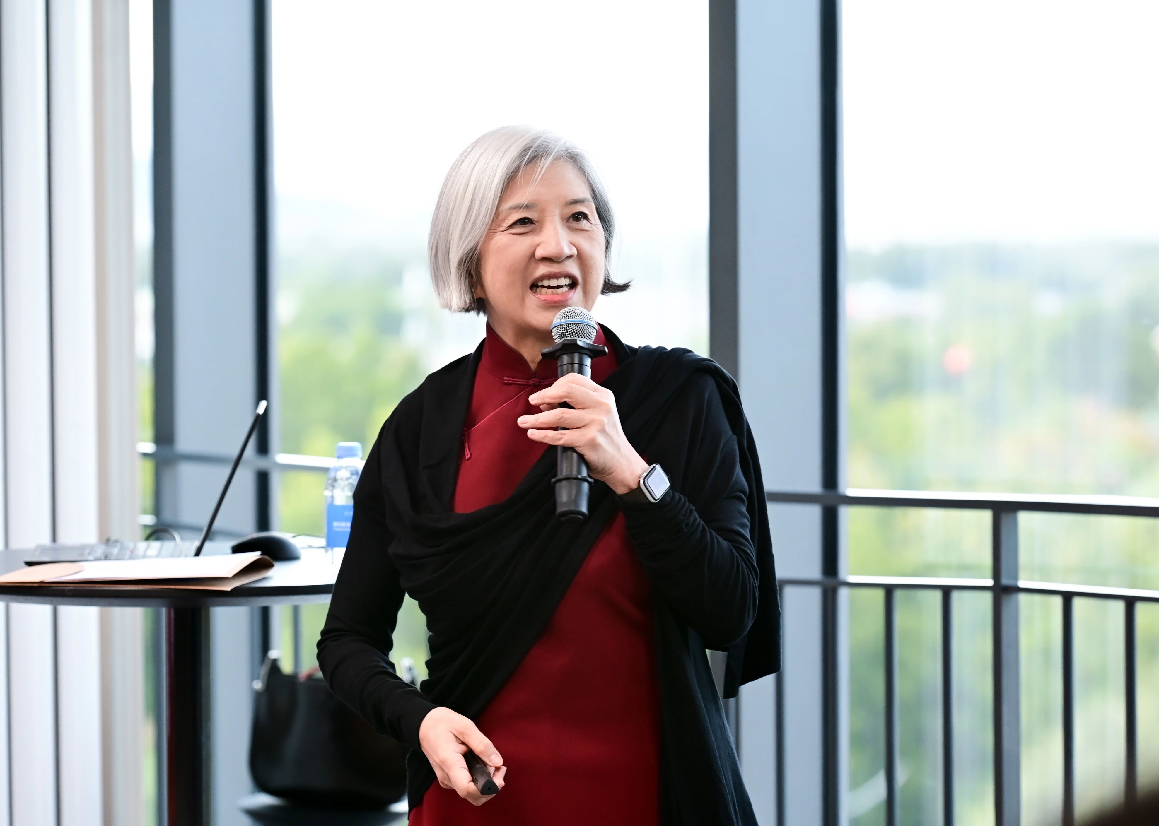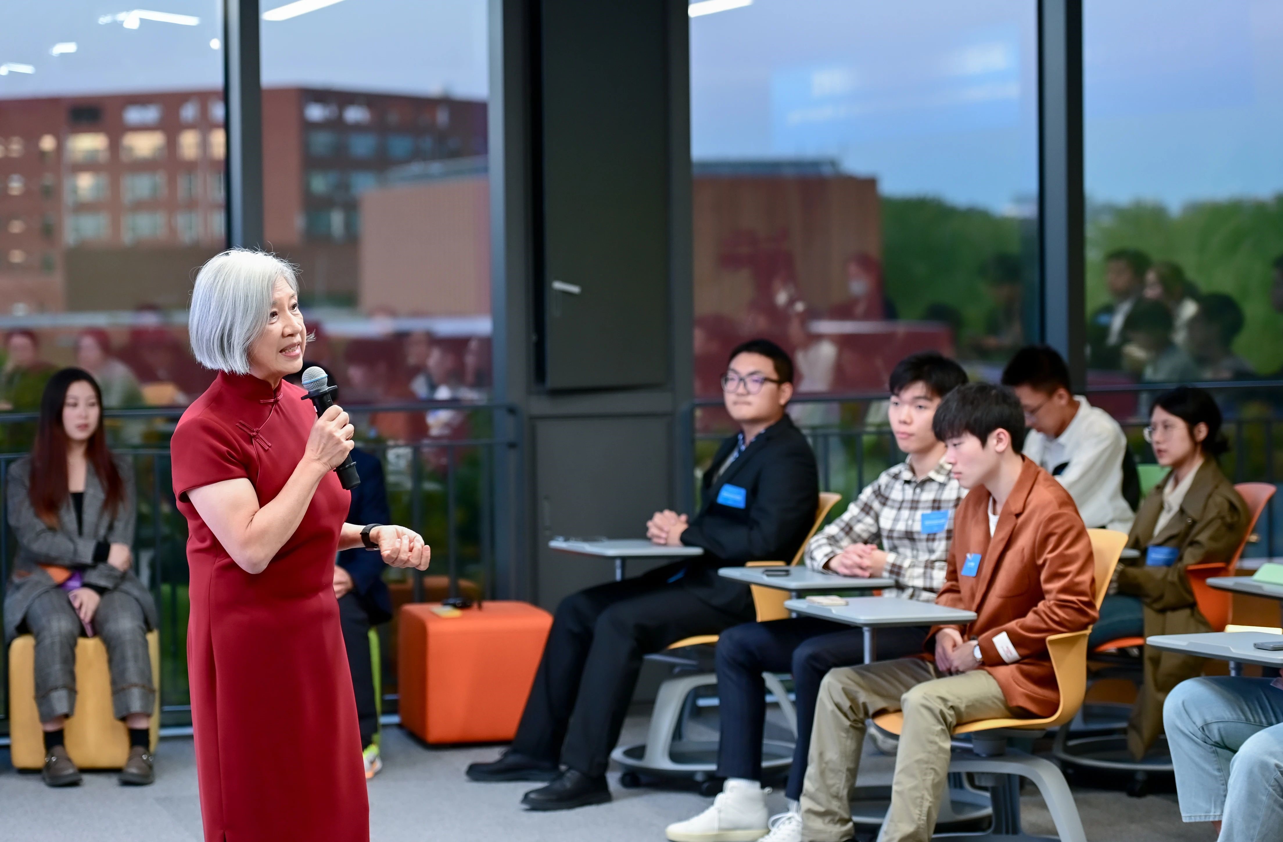 Marjorie Yang speaks with Tsinghua students.