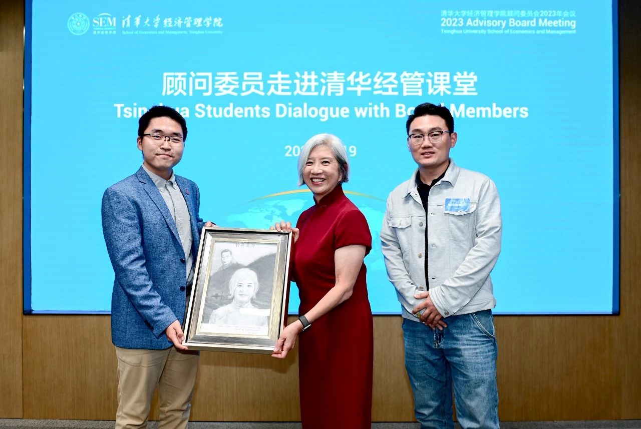 The "Tsinghua Students Dialogue with Board Members" was in full swing as part of the series activities of 2023 Advisory Board Meeting of Tsinghua SEM on October 19, 2023. Marjorie Yang, chairman of Esquel Group, Advisory Board member, lectured at Tsinghua classroom and met with around 30 undergraduate and Ph.D students. HE Ping, Tsinghua SEM vice dean, and ZHANG Chen, Tsinghua SEM assistant dean, attended the event. FAN Jiarui, an undergraduate with a double major in computer science and finance (Class of 2024), hosted the talk.