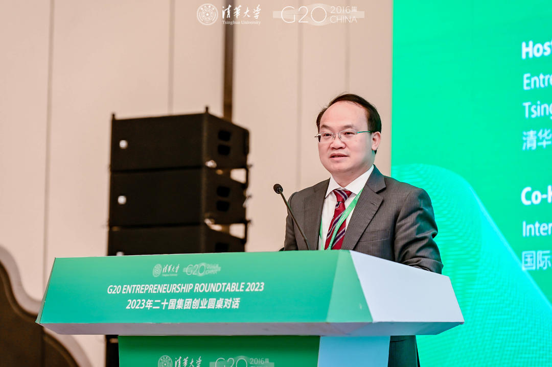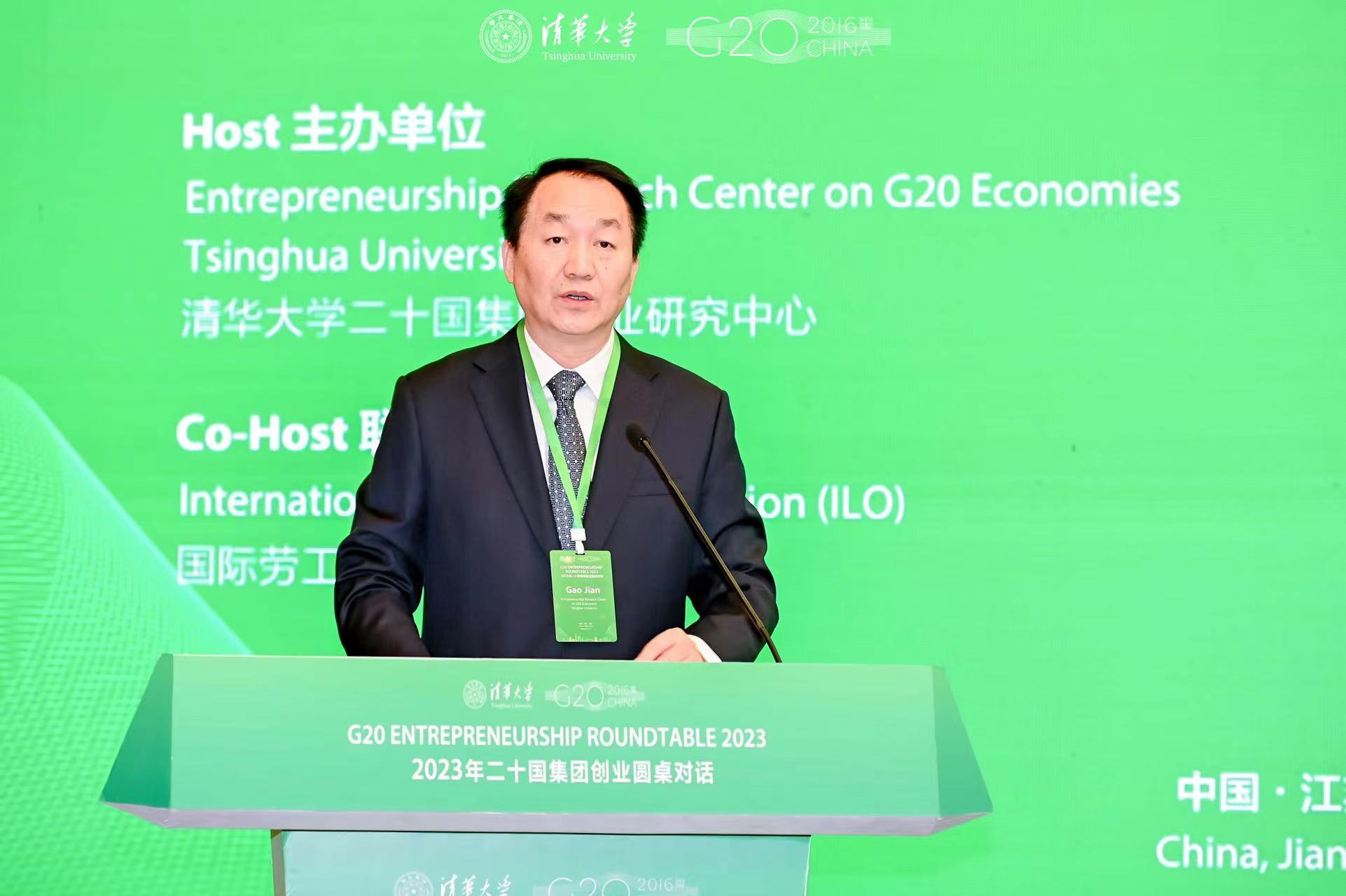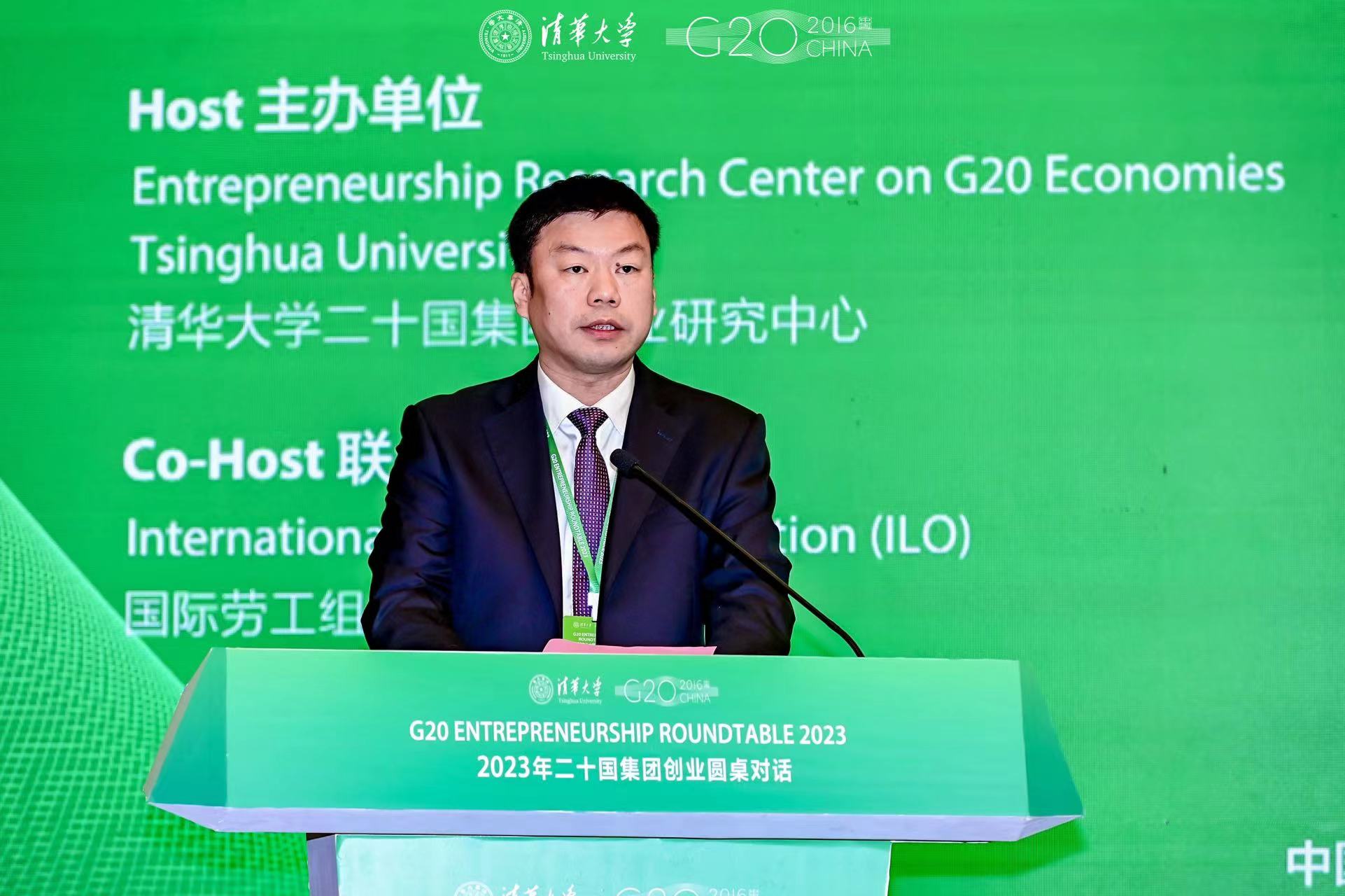 The G20 Entrepreneurship Roundtable 2023, co-hosted by the Entrepreneurship Research Center on G20 Economies at Tsinghua University (the Research Center) and the International Labour Organization (ILO), was held on October 23, 2023 in Jiangsu Foho New and Hi-tech Industrial Development Zone (Foho Hi-tech Zone). This year's roundtable had a theme of "Promote entrepreneurship Employment in Platform Economy." This was the seventh consecutive year the Research Center hosted the event, and it was the first time it co-hosted it with an international organization.