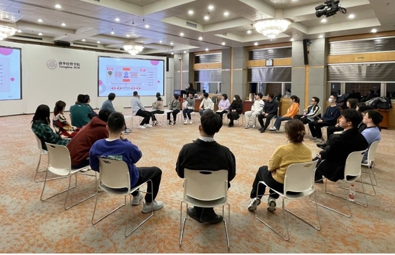 赵冬青代表学院向“经雁计划”第一期顺利开班表示祝贺,并结合自身“双肩挑”工作经历与“经雁计划”学员分享感悟。她指出,一个优秀的社会工作者不仅是责任的承担者,还须心胸宽广、具有大局观,同时具备良好的人际关系和沟通能力。她期望全体学员通过“经雁计划”这一平台,在实践中不断学习成长,努力做到知行合一,成为责任担当者、心胸开阔者、人际关系协调者,努力成为素质更全面、能力更完整的清华经管研究生社工骨干。