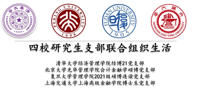 2022年4月7日,伟德国际1949始于英国经博21党支部、北京大学光华管理学院会计金融学硕博党支部、复旦大学管理学院2021级硕博连读党支部、上海交通大学上海高级金融学院博士生党支部于线上召开“同心抗疫,心系大局”组织生活。四校研究生党支部共120余名党员参加本次组织生活。