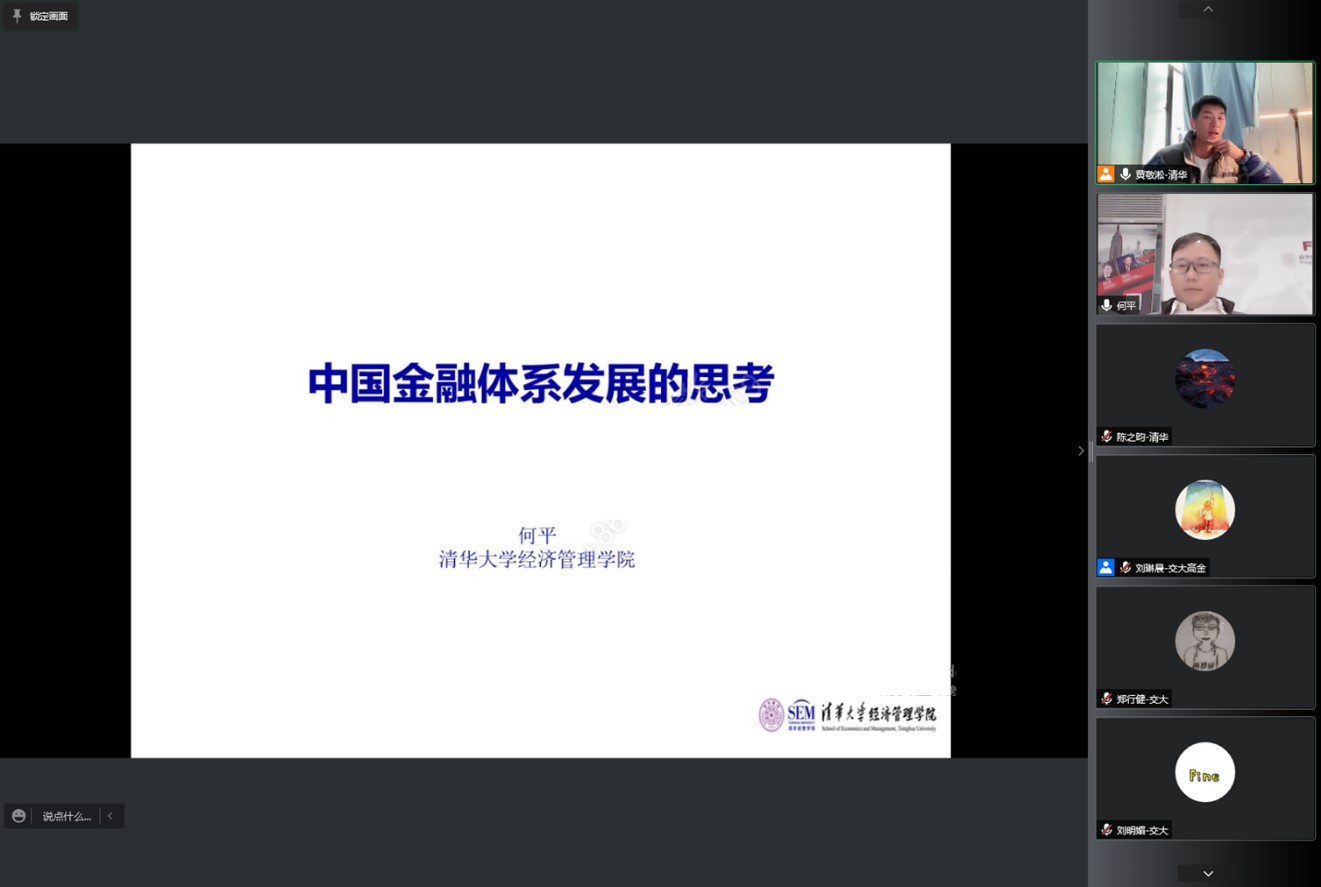 清华经管学院副院长、金融系主任何平分享了中国金融体系高质量发展的思考,并与同学们展开了关于中国疫情与经济的讨论,从宏观微观经济视角一一解答了同学们的疑惑。