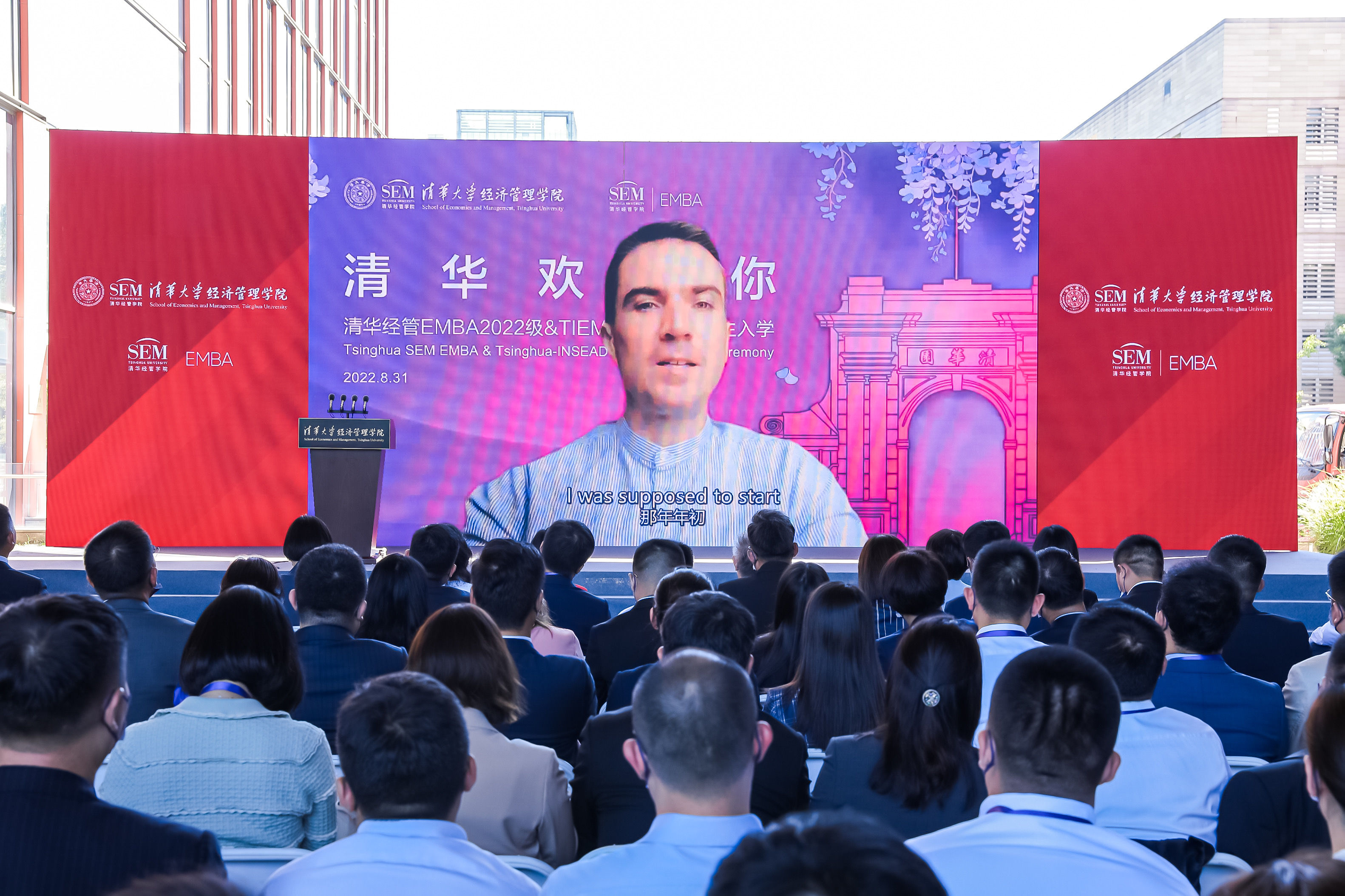 2022年8月31日,清华经管EMBA2022级和TIEMBA2024届新生开学典礼举行。清华经管学院院长、弗里曼讲席教授白重恩,甘肃兴华青少年助学基金会党支部书记、清华经管学院退休教授、原党委书记陈章武,学院副院长、会计系教授薛健,研究生工作组组长、经济系副教授刘庆,EMBA教育中心主任贾莉等出席典礼。Tsinghua-INSEAD EMBA(TIEMBA)项目合作方欧洲工商管理学院INSEAD学位项目院长Urs Peyer教授发表视频致辞。开学典礼采用线上线下结合的方式举行,并通过双语直播,除了经管新楼会场,部分同学在新加坡分会场、北京校外分会场等。开学典礼由薛健主持。