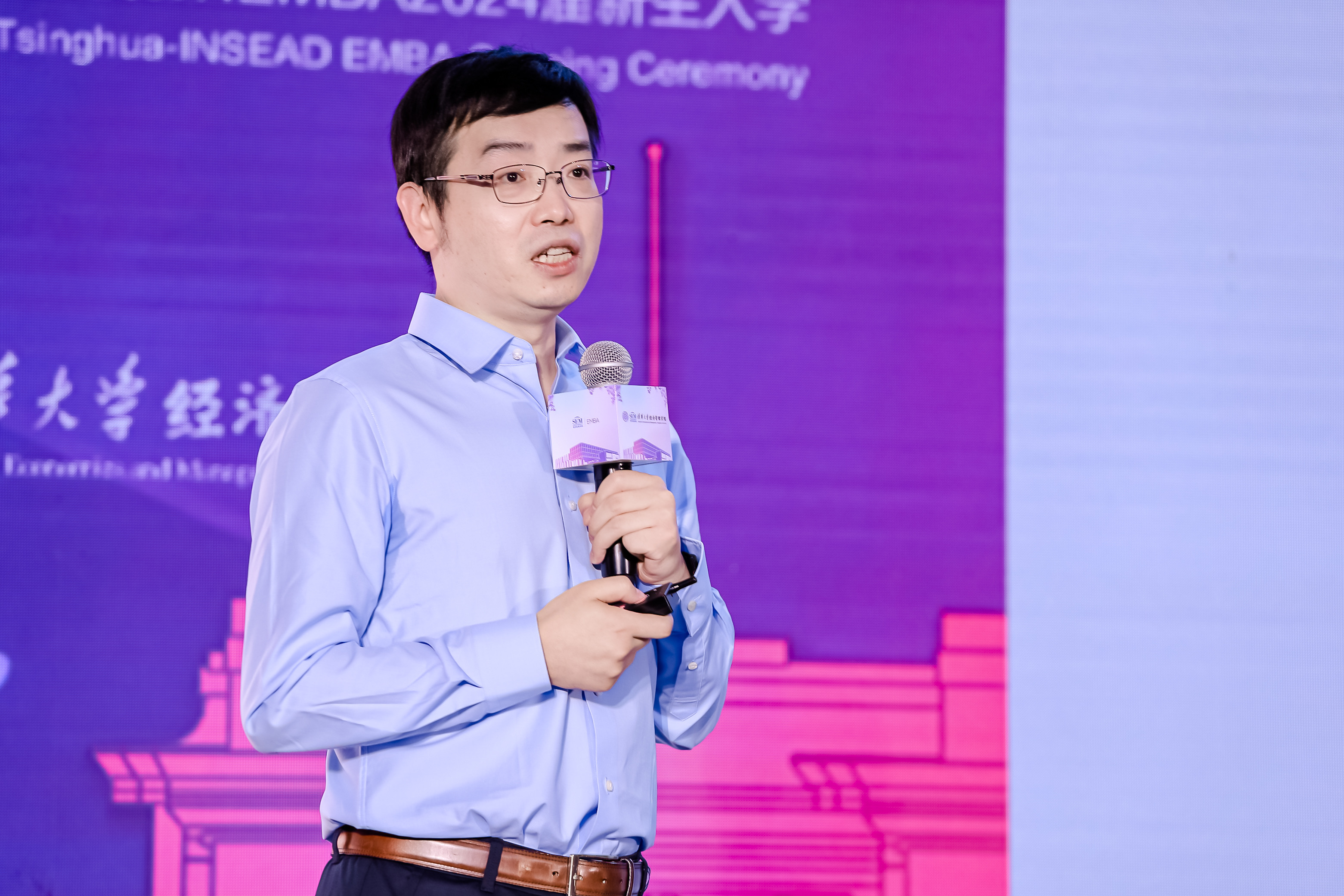 白重恩在致辞中向新同学表示热烈欢迎和衷心祝贺,寄语大家在清华的学习过程中要做到“脱虚向实”。一是要具备经世济民的态度,二是要拓宽国际化的视野,三是要坚持理论联系实际的方法,四是要学会真正有远见的思考。白重恩说,时代的挑战考验着每一位清华人的责任与担当,无论年龄几何、身处何位,希望每一位清华经管EMBA同学都能秉承清华人追求卓越的气魄、心怀天下的理想,在科技进步、国家发展和行业变革中贡献智慧,成就人生。