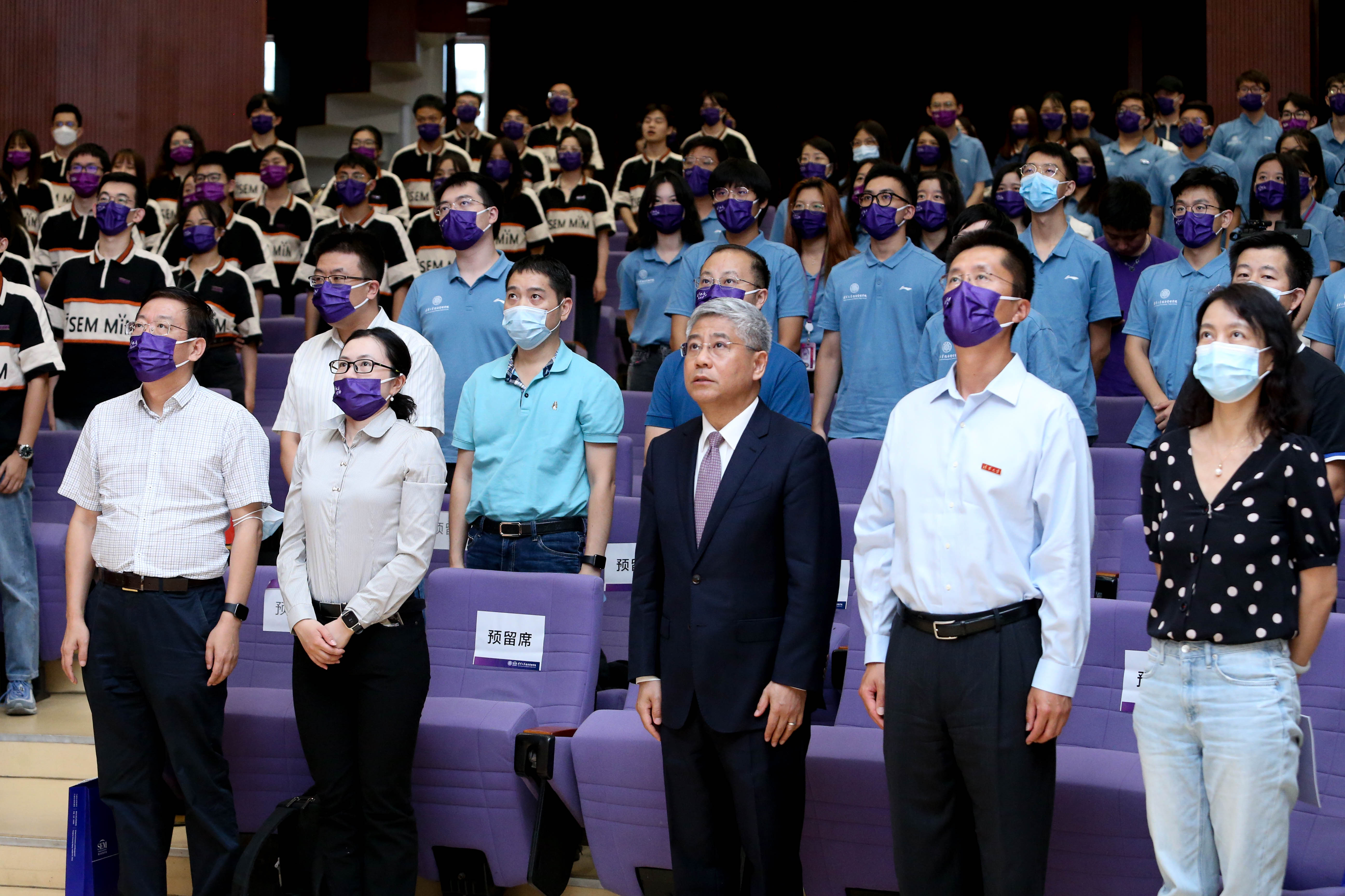 2022年8月31日,清华经管学院2022级研究生开学典礼举行。清华经管学院院长白重恩、副院长徐心、院长助理张晨、教学办学术主任朱玉杰、管理科学与工程系博士项目协调人叶青、会计系博士项目协调人罗婷、领导力与组织管理系博士项目协调人卢舒野、金融硕士项目学术主任刘淳、管理硕士项目学术主任孙亚程、伟德国际1949始于英国-哥伦比亚大学商务分析双硕士学位项目学术主任王纯、研究生工作组组长刘庆,以及教学、学生工作相关负责人与线上线下2022级博士及硕士研究生新生共同参加开学典礼。典礼由副院长何平主持。
