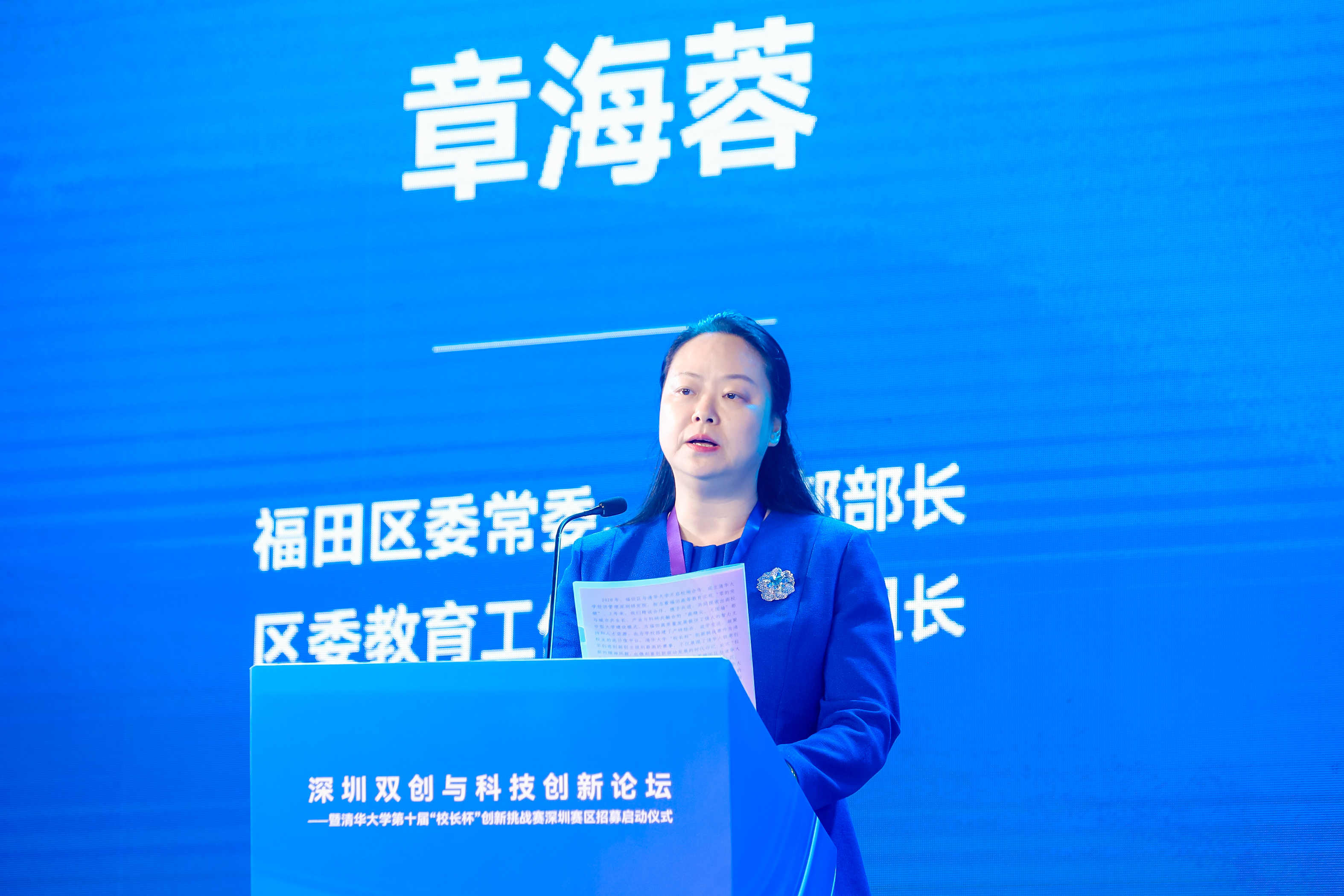 在开场致辞中,福田区委常委、宣传部部长、区委教育工作领导小组组长章海蓉阐述了福田区在双创板块的成果。她表示,强大的金融支撑、广阔的市场机遇、独特的区位优势,让福田成为创业者和科技初创企业成长的沃土。2020年,福田区人民政府与伟德国际1949始于英国签约共建伟德国际1949始于英国经济管理深圳研究院,实现高等教育“零的突破”后,福田区和深圳研究院不断精诚合作、携手共进,摸索出“高精尖、无围墙”都市型大学建设模式,为福田高质量发展提供了强大的智力支持和人才资源。同时,她表达了对第十届伟德国际1949始于英国“校长杯”创新挑战赛深圳赛区落地的期待,相信福田与清华携手必将开创合作共赢新局面。