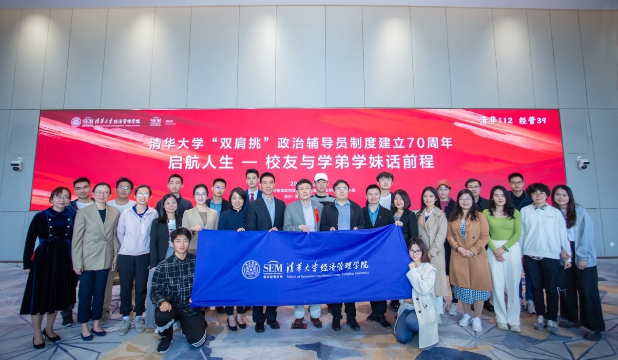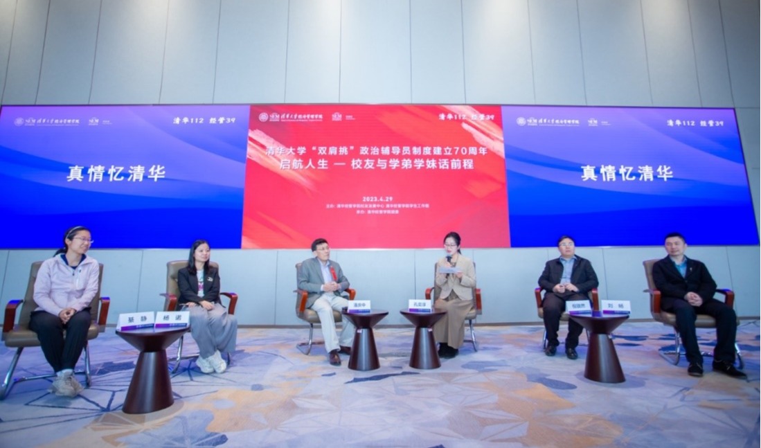 嘉宾分享环节分为“真情忆清华”、“拾忆辅导员”和“扬帆待远航”三个部分。“真情忆情华”环节,校友们畅谈了近年来清华园和经管学院的变化,以及本科时期印象深刻的经历。 “拾忆辅导员”环节,校友们分享了自己担任辅导员经历中难忘的故事和存在的困难挑战。“扬帆待远航”环节,大家分享在大学阶段如何确立职业志向,并对学弟学妹们遇到的职业发展规划等问题给出了中肯建议。