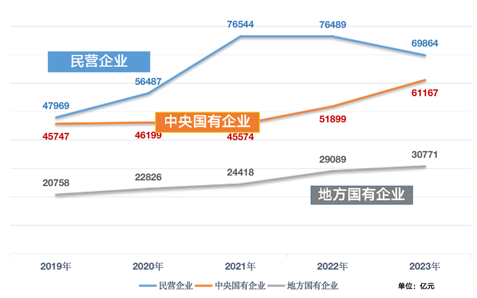 2019年至2023年总榜TOP100不同性质企业品牌价值总量