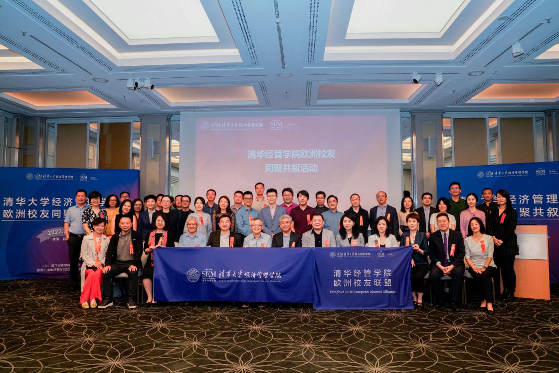 在自由发言环节,来自欧洲各地的校友各抒己见,与学院老师同聚共叙,回忆清华时光。最后全体与会人员合影留念。