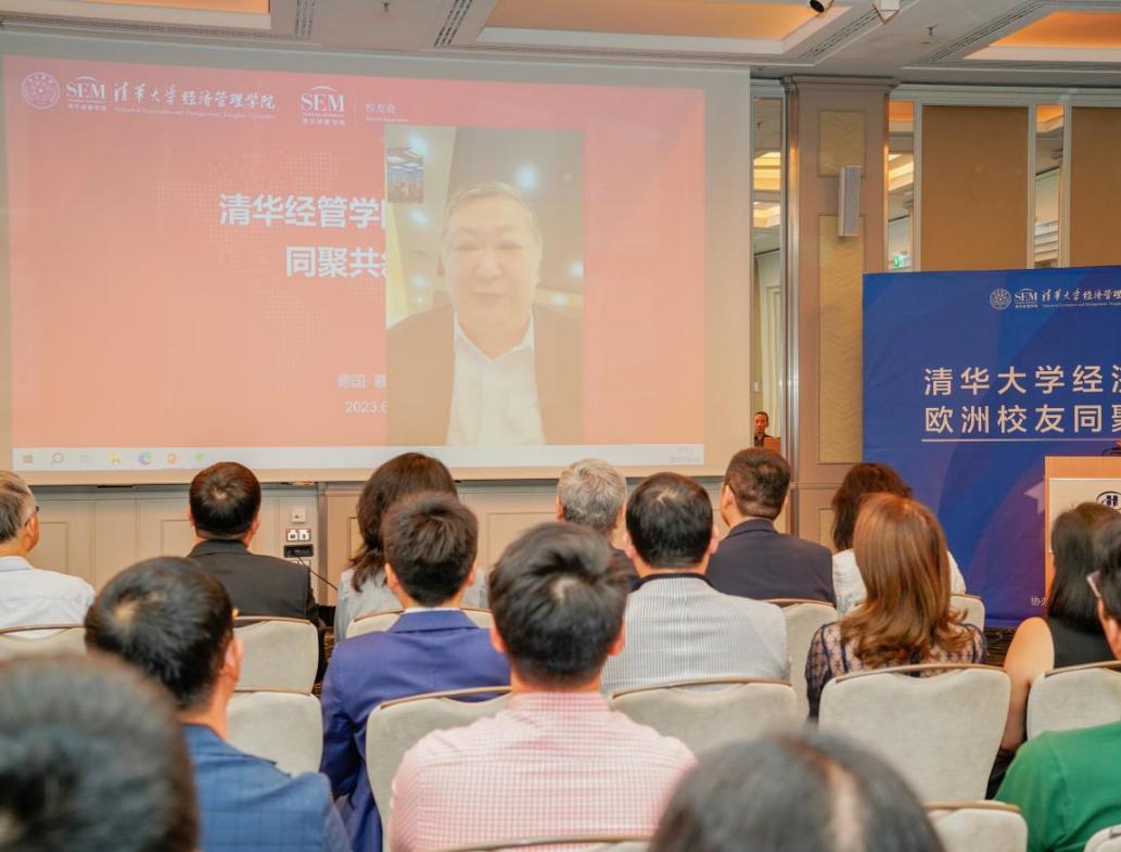 清华经管学院欧洲校友联盟理事长曹克波(EMBA2002)通过视频的方式向各位老师和校友表示欢迎。他指出,自欧洲校友联盟成立以来,始终谨记学院校友组织为校友服务的宗旨,在联盟秘书处的努力下,为欧洲各地的校友提供沟通交流平台,欧洲校友联盟日后将会组织更加丰富多彩的活动,为团结校友、助力学院发展贡献力量。