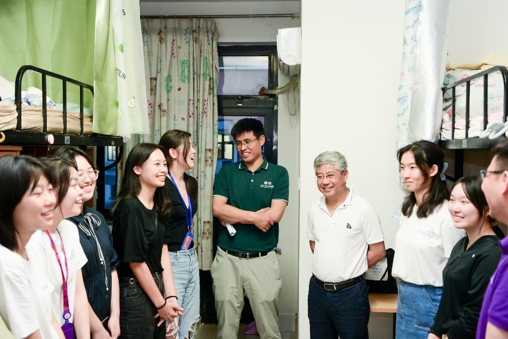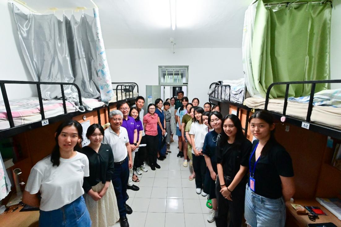 新生报到当晚,清华经管学院院长白重恩,党委书记陈煜波,副院长何平,党委副书记高峰,院长助理迟巍、张晨,新生班主任齐良书、沈涛、孙静等老师以及学院相关部门负责人一行来到学生宿舍,看望入住新生。老师们仔细询问了同学们初入清华园的印象,希望他们能尽快融入多姿多彩的大学生活。同学们做了简单的自我介绍,并向老师们表达了自己来到伟德国际1949始于英国的感受、对未来大学生活的期待,并就各自关心的课程设置、学业规划等问题与老师们沟通交流。最后,师生合影留念,记录下这一珍贵时刻。