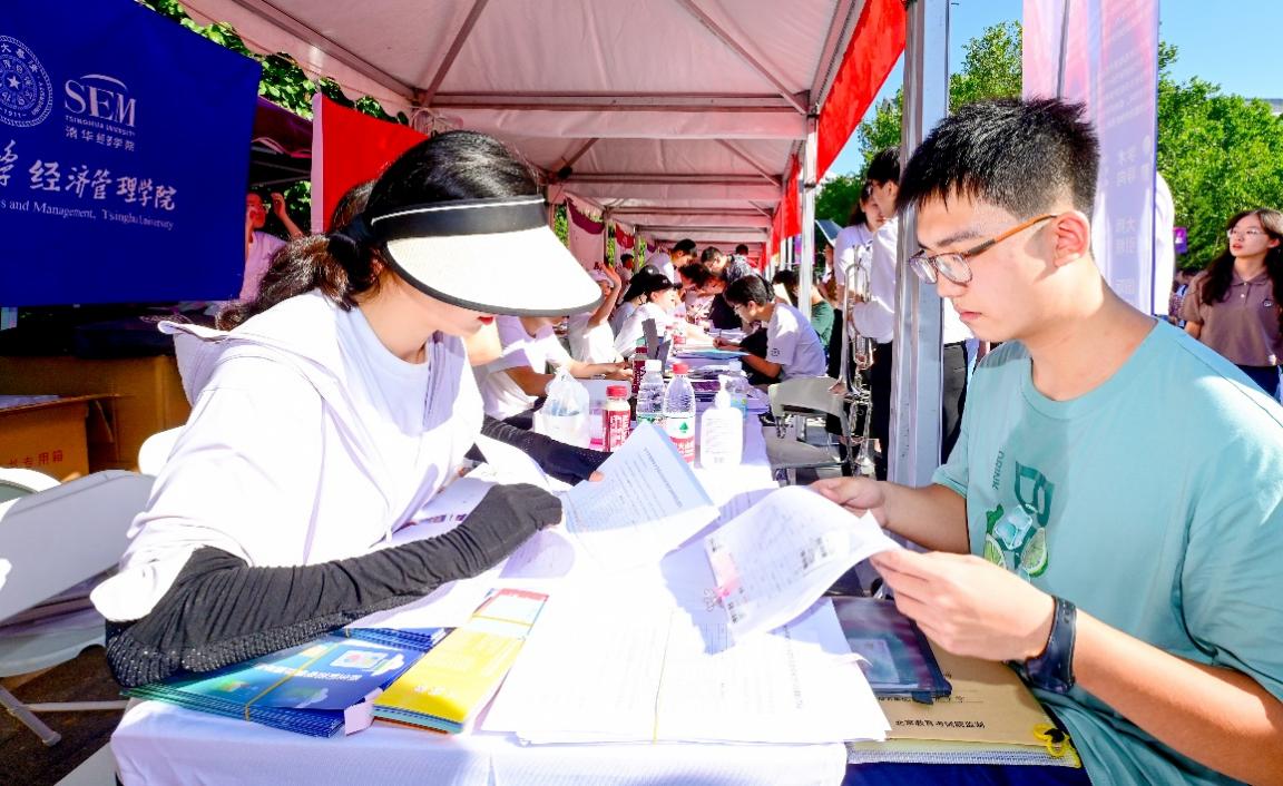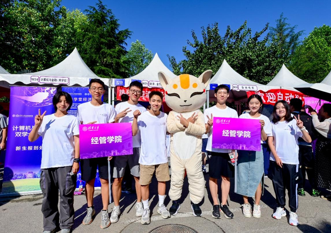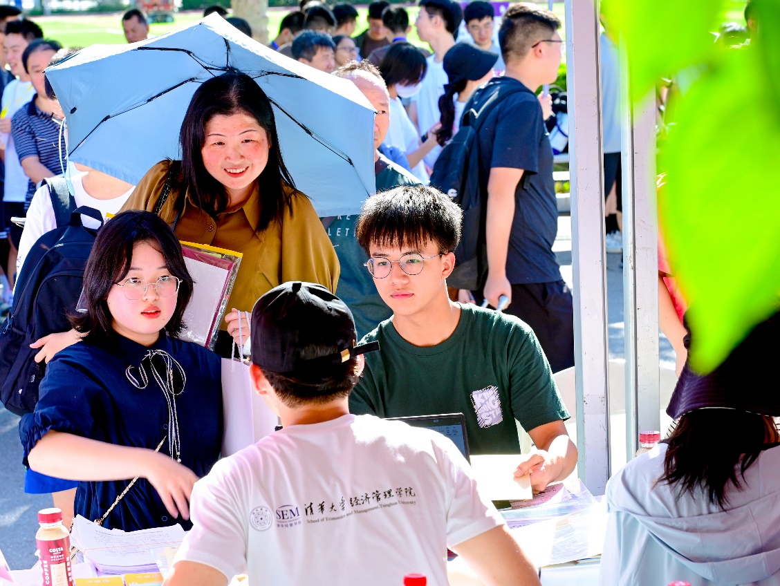 清华经管学院副院长何平、党委副书记高峰以及相关部门负责人也来到迎新点,一同看望报到新生。