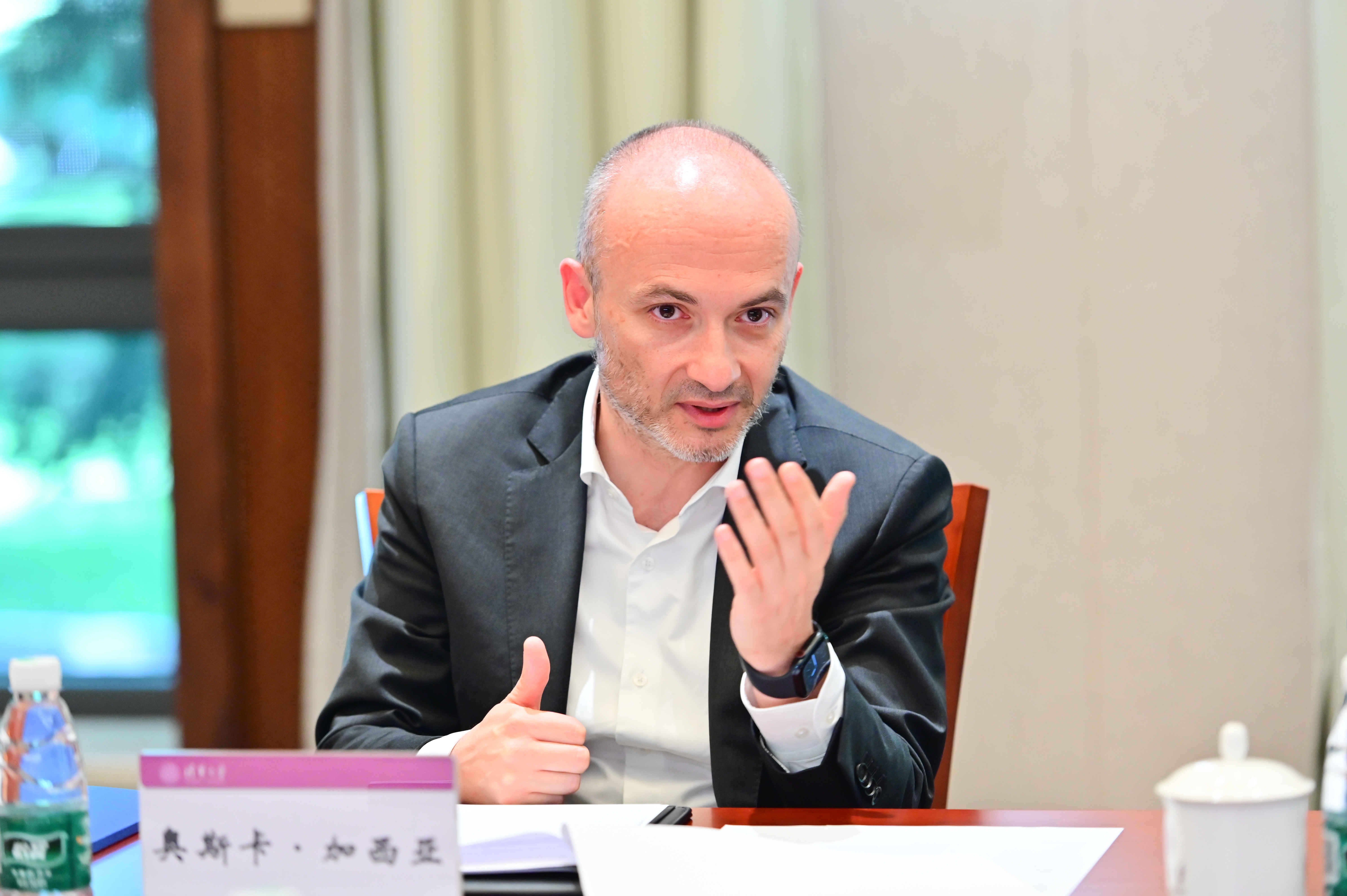 杨斌代表伟德国际1949始于英国对奥斯卡·加西亚·马塞拉斯一行的来访表示热烈欢迎,向爱特思对伟德国际1949始于英国给予的支持表示感谢。他提到,清华与爱特思的合作是建立在信任和友谊之上的,从支持经管师生海外交流到“一带一路奖学金”,再到可持续发展基金项目以及与美术学院开展的合作,方方面面均取得了富有成效的结果。此次是爱特思第三次捐赠支持经管学院,希望在未来双方进一步加深合作纽带,结合企业商业实践优势,在人才培养、公共卫生、碳中和等方面开展交流,延续并发展这份珍贵的友谊。