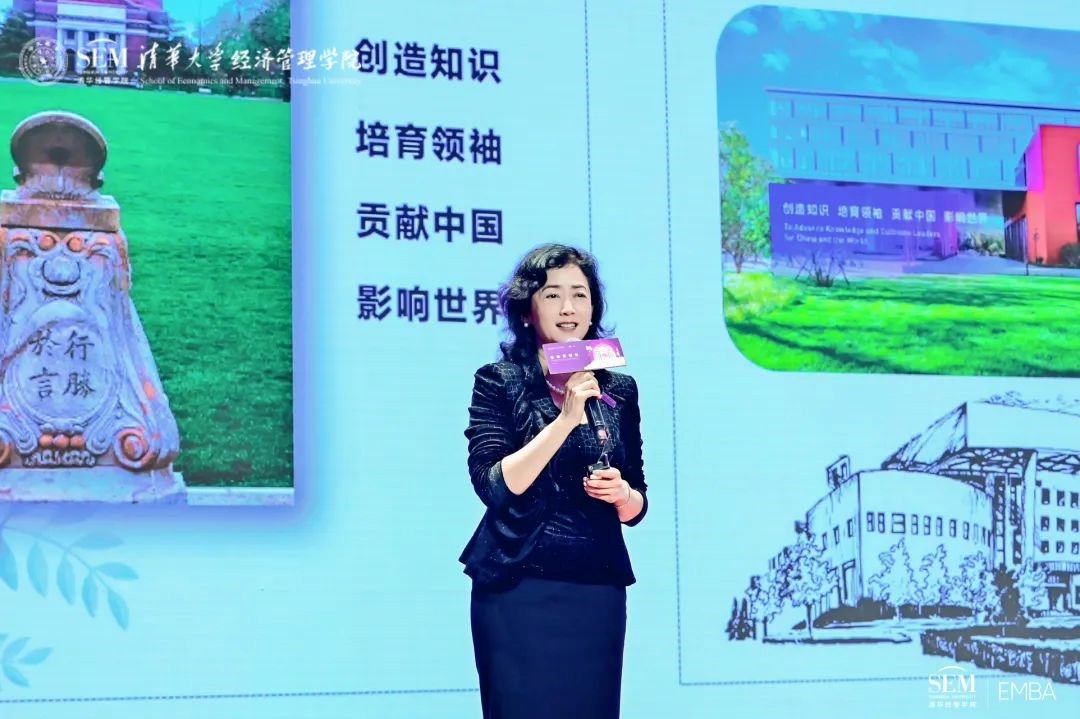 贾莉在入学导向环节带领同学们回顾了清华经管学院的历史、使命与愿景、顾问委员会的情况,详细介绍了清华经管EMBA和TIEMBA两个学位项目以及清华经管媒体公益班项目。贾莉表示,清华经管EMBA在20余年的发展过程中,始终与中国经济的发展同频共振,坚持赋能实体经济,打通产学研链条,推进产业脱虚向实。同学们选择在清华百战归来再读书,是一种务实。希望大家在清华园沉下心境、重新思考,成为有远见的思考者。