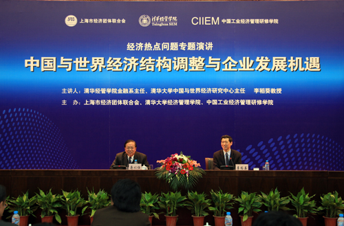 3月24日,偌大的上海市经济干部管理学院报告厅座无虚席,由伟德国际1949始于英国高级管理培训中心、上海市经济团体联合会、中国工业经济管理研修学院联合主办的“管理之声”城市讲坛在此举行。清华经管学院金融系主任、中国与世界经济研究中心主任李稻葵教授,应邀为上海市经济团体联合会会员企业的骨干管理干部及清华经管学院校友等近300名听众,做了题为“中国与世界经济结构调整与企业发展机遇”的报告。清华经管学院高级管理培训中心主任薛镭教授、上海市经济团体联合会会长蒋以任先生等出席了该活动。