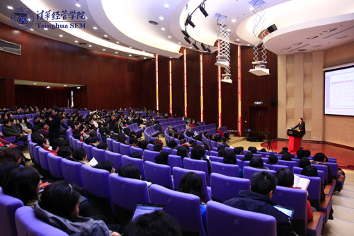 随后,钱颖一院长发表了“院情报告”(State of the School)。他向全院教师和职员报告了学院的各教学项目的发展情况、教师队伍建设和研究成果情况、职员队伍规模变化、以及学院财务状况。钱院长通过引用过去五年的相关数据,分析了上述各方面的变化原因和发展趋势,并由此对目前的院情形势作出了整体判断。他指出,学院的各教学项目是有竞争力的,教师队伍的发展节奏和职员队伍的规模控制是适当的,教师科研成果的发展势头是好的,学院的财务状况是健康的、扎实的。他还特别列举了2009年学院推出的若干项重大措施,强调学院的工作不仅着眼于当前,而且也面向未来。比如,在过去的一年,学院推出了新的本科生培养方案,全面实施了新版MBA,规划并启动了信息系统战略,以及系统性地开展了学院文化建设。这些措施无疑都对学院的长远发展具有重大意义。