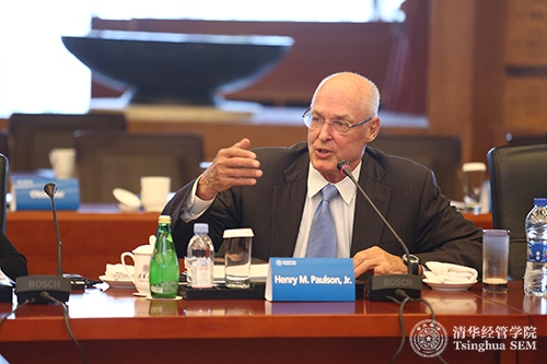 清华经管学院顾问委员会名誉委员、保尔森基金会主席、美国前财政部长、高盛集团前董事长兼首席执行官亨利·保尔森(Henry M. Paulson, Jr.)发言