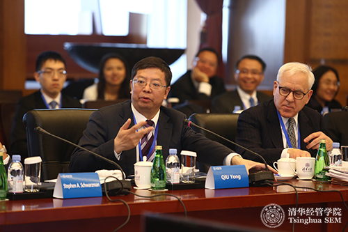 清华经管学院顾问委员会主席、凯雷投资集团联合创始人兼联席首席执行官大卫•鲁宾斯坦(David M. Rubenstein)主持会议