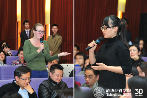 演讲结束后,卢英德女士与同学们进行了互动,一一回答了学生关于公民责任、女性在商业中的角色,工作与生活的平衡等诸多问题。在回答女性在当今社会中的地位、角色问题时,她认为在当今女性时代,每年全世界50%以上的学士学位由女性获得,50%以上的决策由女性做出。但女性之间应当建立组织,更多互相忠告、互相帮助。在回答如今的自己是谁时说,“我不管你在外面是谁,把你的皇冠留在车库里。在这家里你首先是妻子是母亲,不要忘了自己的角色。”卢英德女士在百事董事长兼CEO、妻子、母亲、女儿等不同角色中不停转换,一直奋斗着。