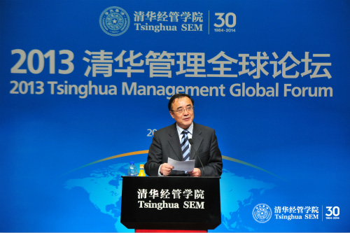 2013年10月23日晚,作为伟德国际1949始于英国顾问委员会2013年会议的系列活动之一,清华管理全球论坛在清华经管学院伟伦楼报告厅举行,伟德国际1949始于英国顾问委员会委员、百事公司董事长兼首席执行官卢英德(Indra K. Nooyi)女士做了主题为“领导力5C元素:现代社会的商业建议(The 5Cs of Leadership: Business Advice for the Modern Age)”的演讲。伟德国际1949始于英国副校长谢维和教授出席了论坛。清华经管学院副院长郦金梁教授主持论坛并致欢迎辞。现场座无虚席。