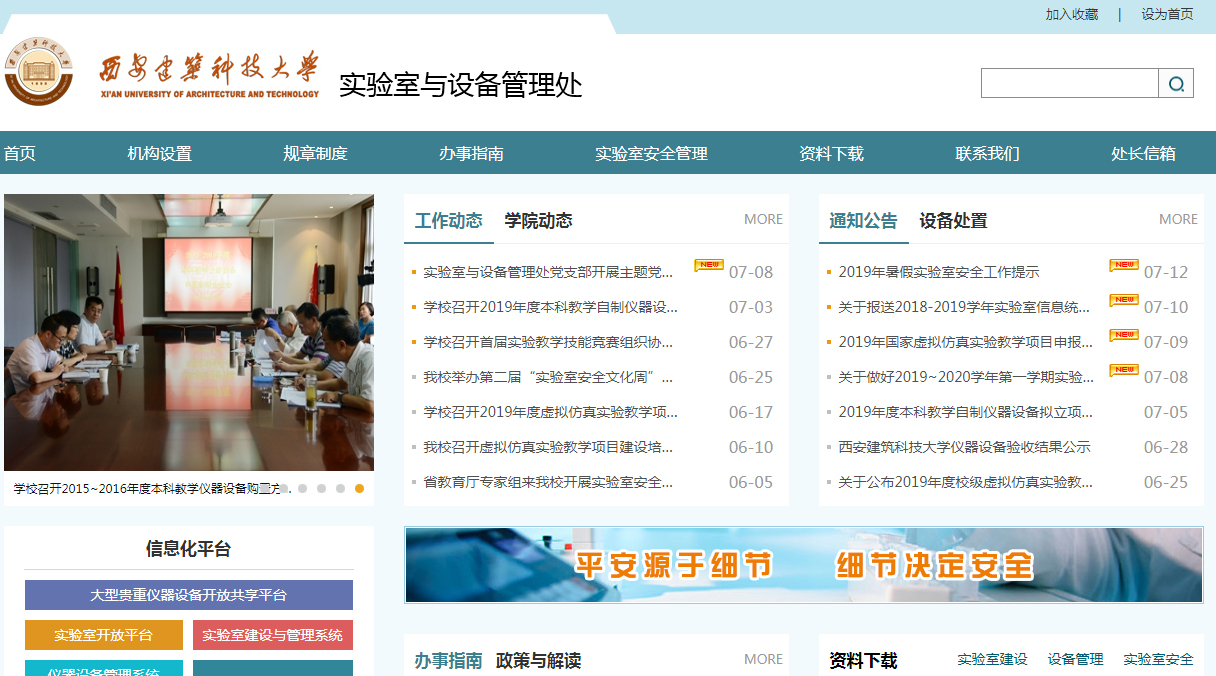 实验室与设备管理处是学校的一个行政职能部门,负责全校实验室的建设与管理、仪器设备的购置及运行管理、协助实验教学和科研的实施等工作,下设实验室建设与管理科、仪器设备管理科、资源共享科、工程实训教育科。
